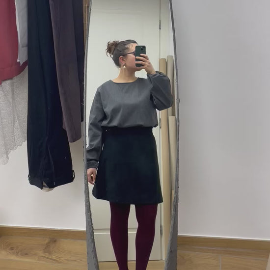 Blusa dal taglio semplice e pulito, leggermente svasato.