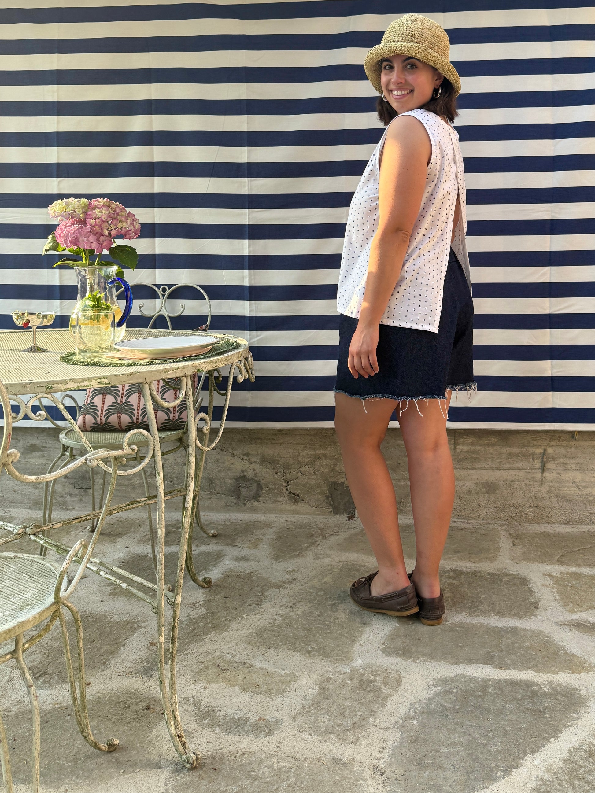 Il top ha un taglio a trapezio, quindi rimane più "aderente" sul seno e si allarga sui fianchi.