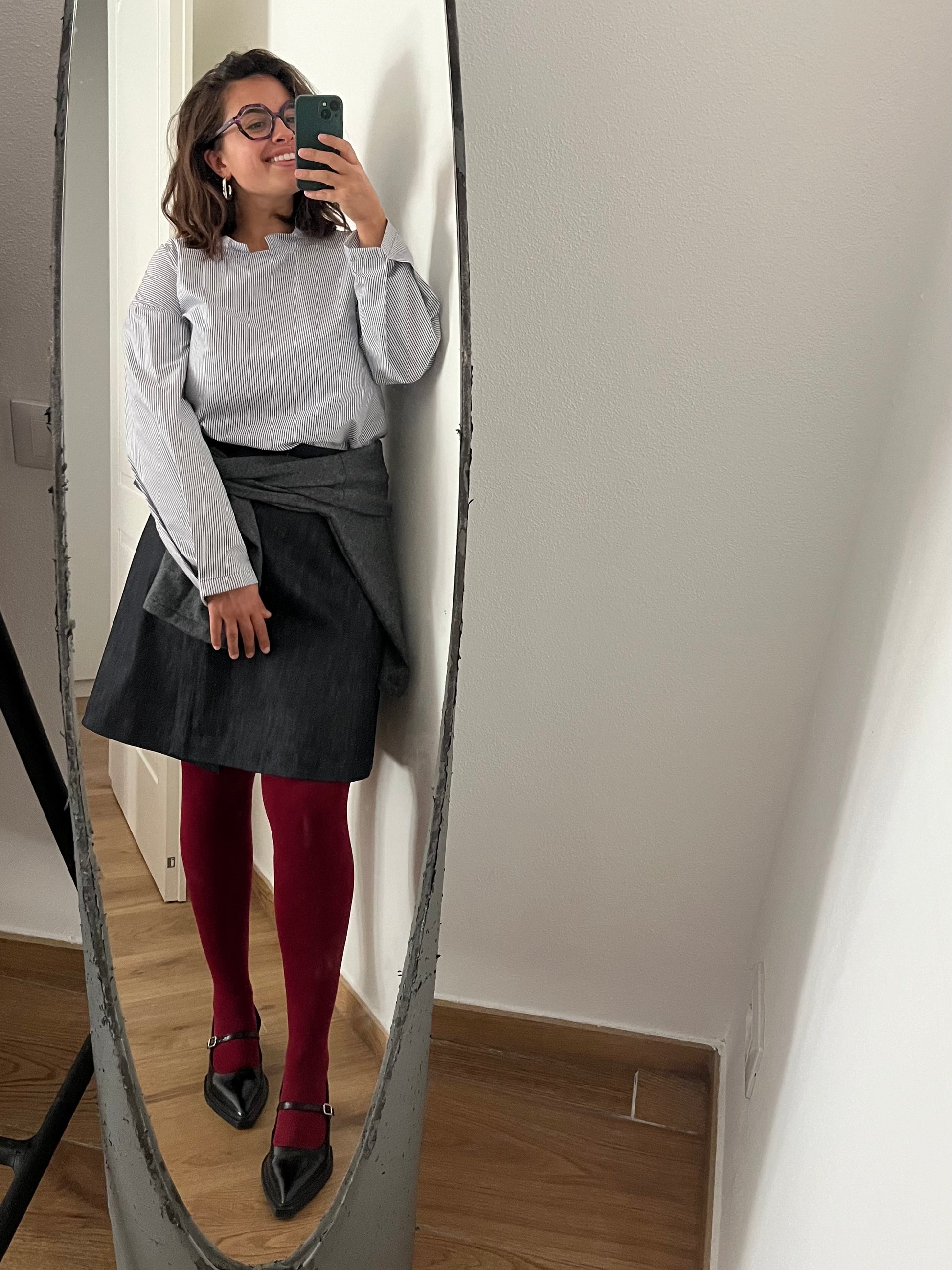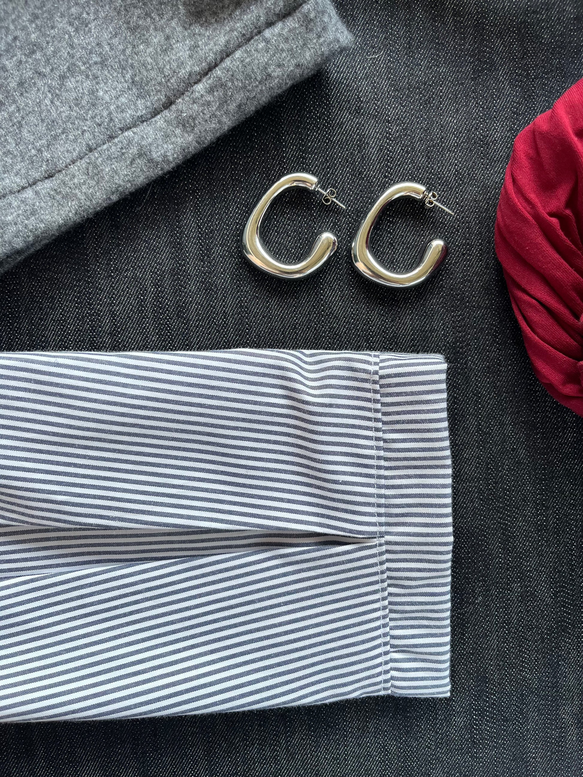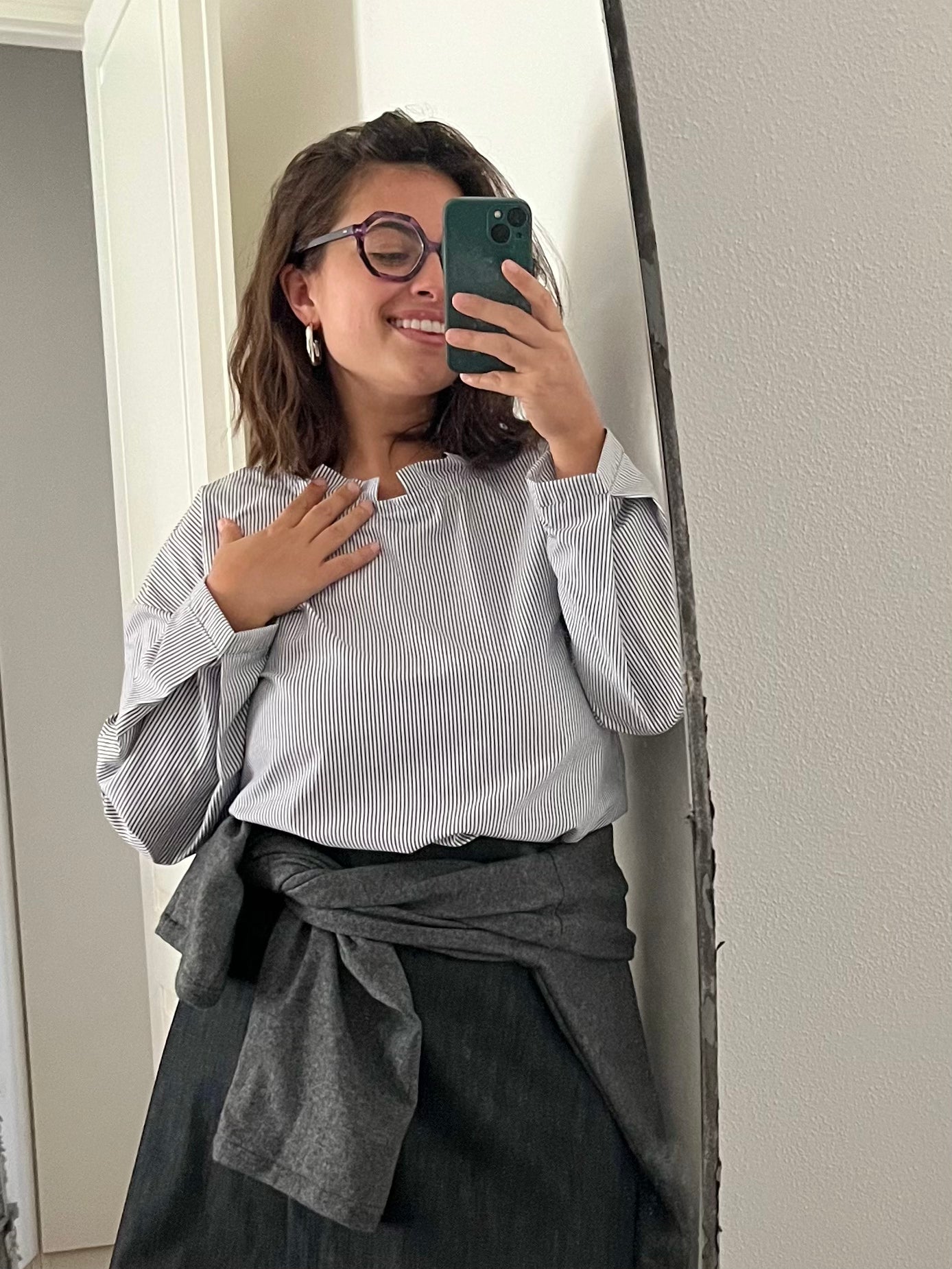La blusa ha un taglio morbido, un po' over, e la spalla scesa.