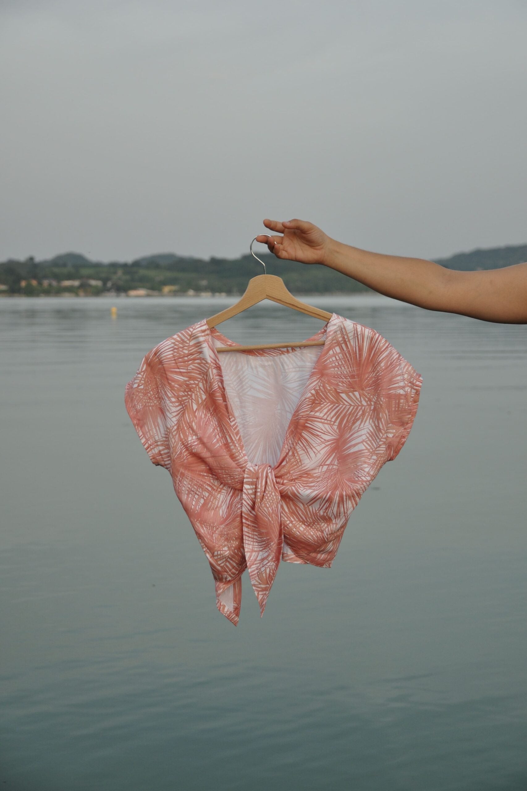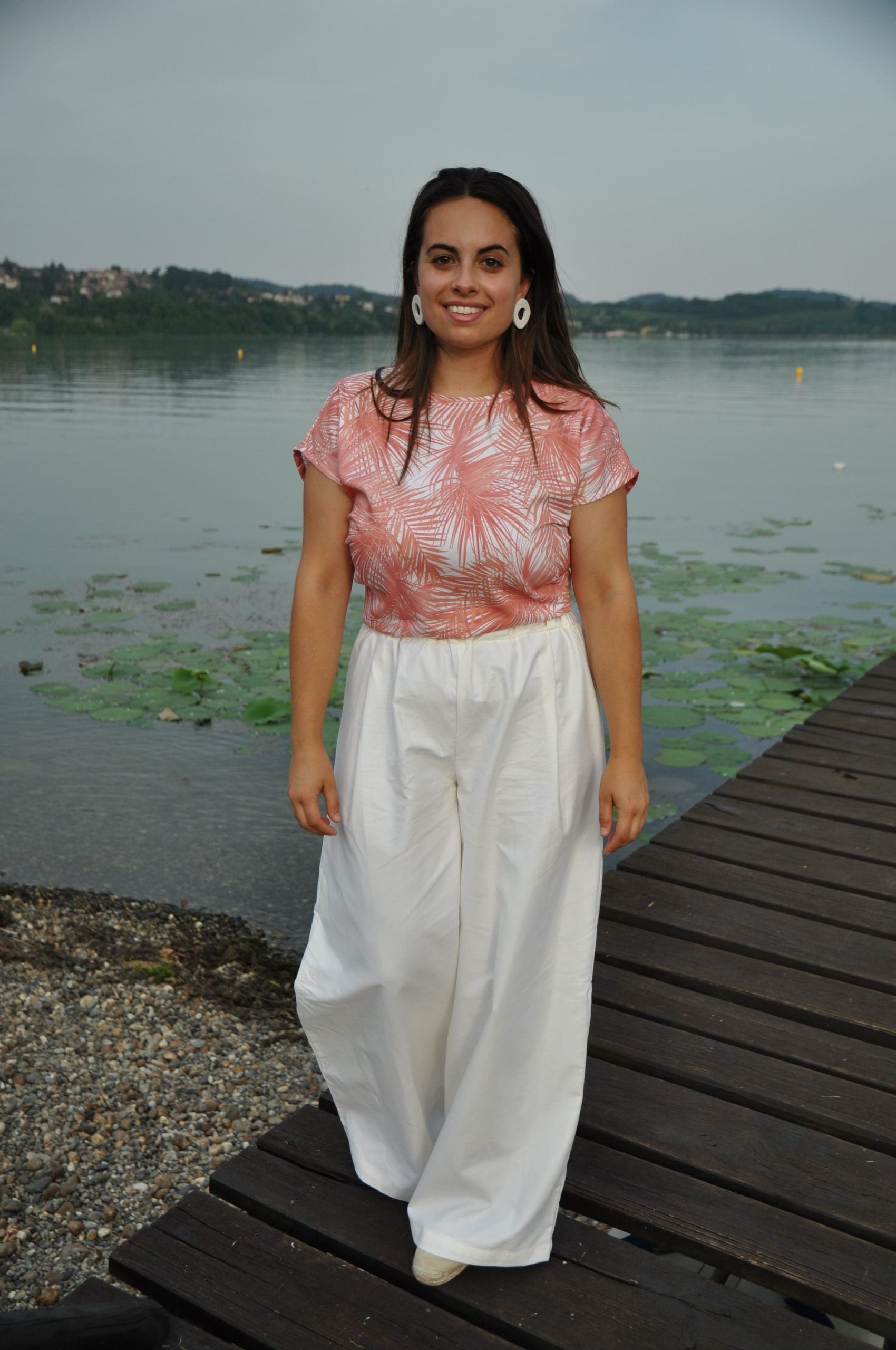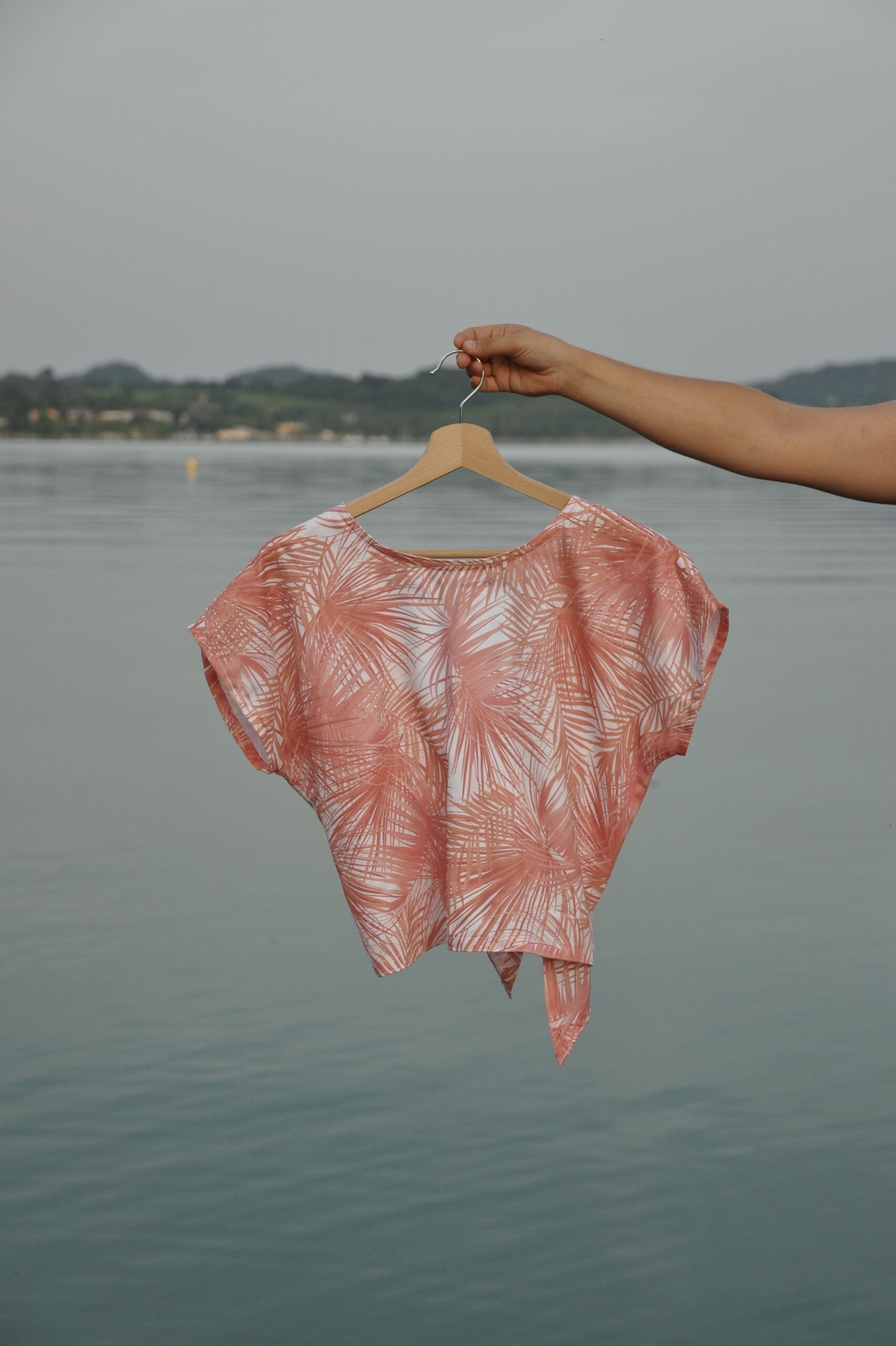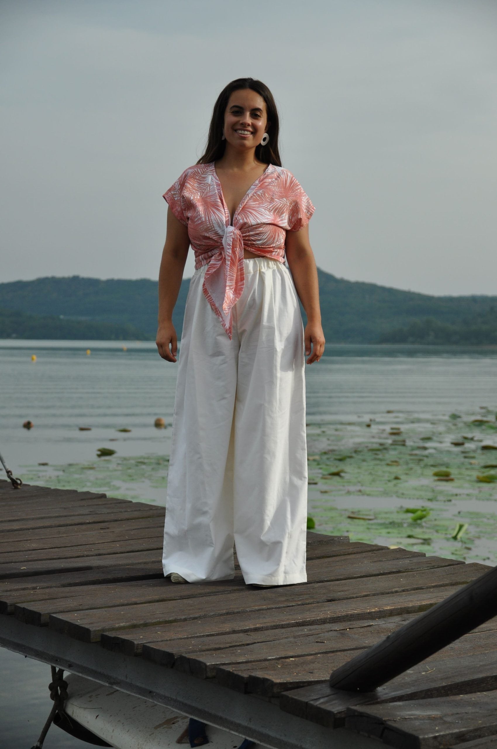 Avendo la possibilità di scegliere se allacciarlo con il nodo sul davanti o con il nodo sulla schiena, il top si adatta a diverse occasioni: portato con il nodo sulla schiena è un modello che può essere indossato anche in città, perfetto per un aperitivo o una cena; portato con il nodo sul davanti invece io lo trovo perfetto per il mare, sia indossato come copri costume sia per uscire.