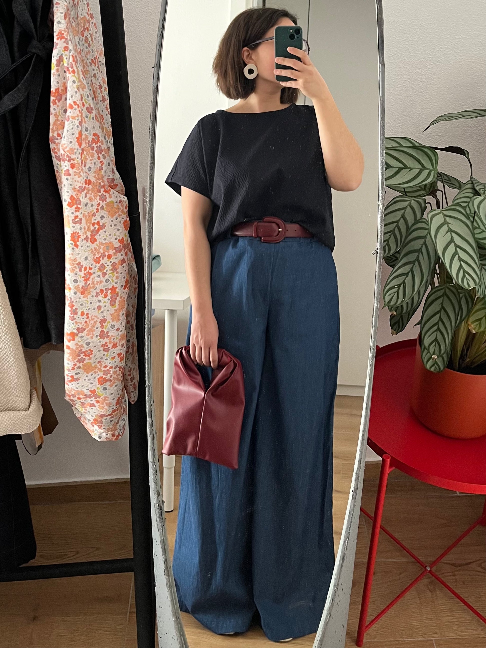 Pantalone palazzo a vita alta dalla gamba molto ampia.