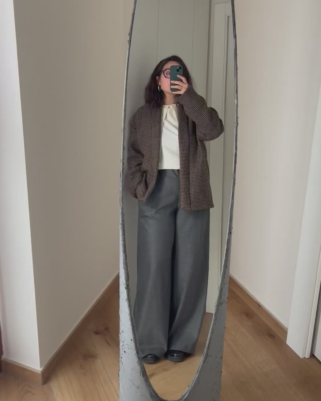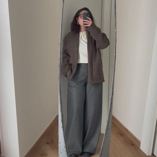 Pantalone palazzo a vita alta dalla gamba molto ampia.